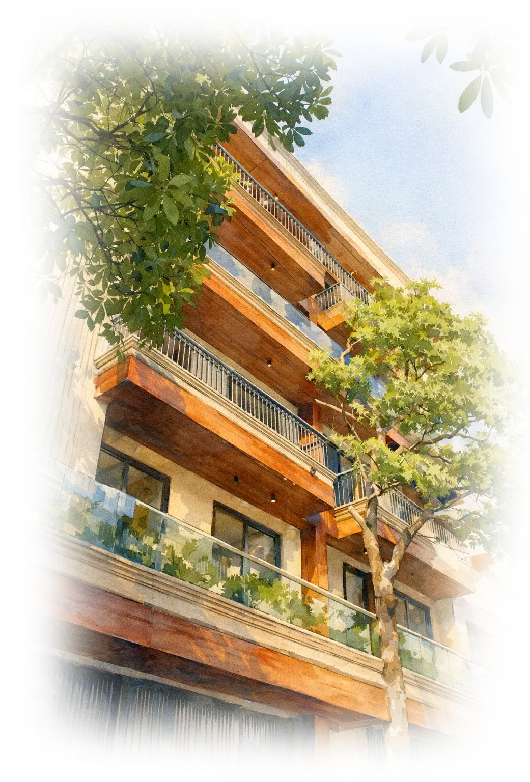 A thoughtfully designed collection of independent luxury floors in Vasant Enclave, where architecture, comfort and privacy come together to create a refined living experience.